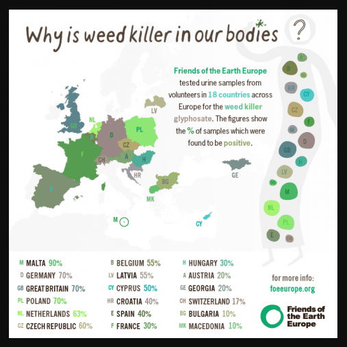 Nedávno proběhlý test, který organizovala skupina Friends of the Earth Europe, nalezl glyfosát v moči lidí z 18 států Evropy včetně České republiky a očekává se, že jeho spotřeba poroste, pokud dojde k nárůstu pěstování geneticky modifikovaných plodin v Evropě.